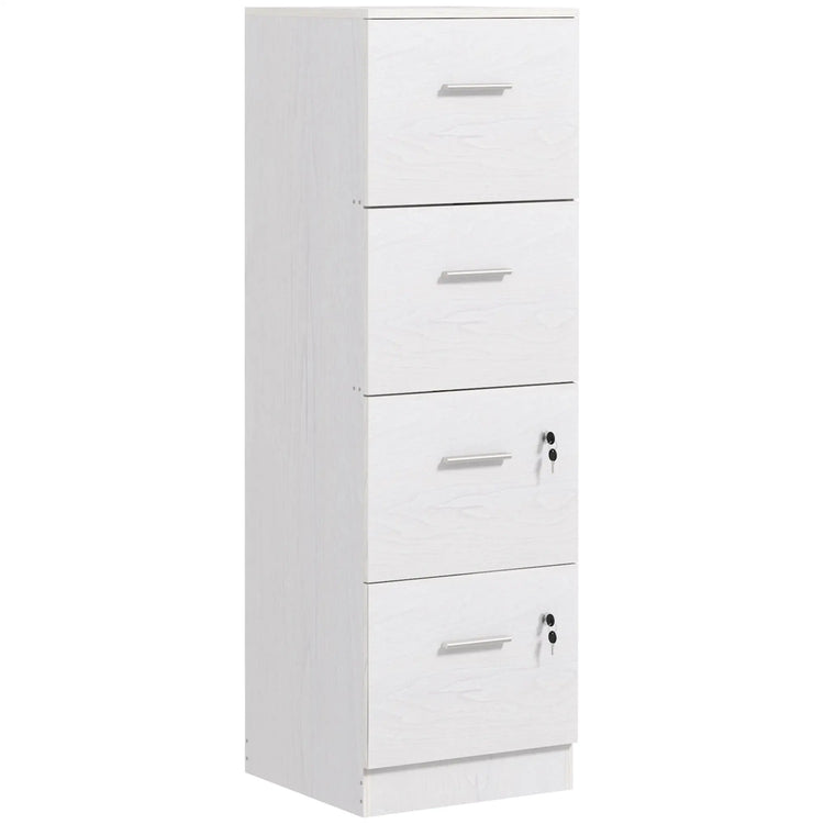 Armoire de classement verticale à 4 tiroirs avec serrure, barre de suspension réglable, blanc
