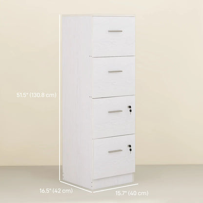 Organisez et sécurisez vos documents avec cette élégante armoire de classement verrouillable, comportant quatre tiroirs avec des barres suspendues réglables pour les fichiers de format A4 et lettre. Sa construction en panneaux de particules mélaminés offre durabilité et un look chic avec un effet bois, en faisant un ajout parfait à tout bureau à domicile. Avec un design anti-basculement et des patins de protection, il assure sécurité et stabilité.