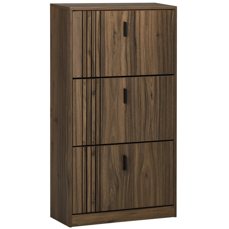 Armoire de rangement pour chaussures, 18 paires, 3 tiroirs basculants, étagères réglables, noyer
