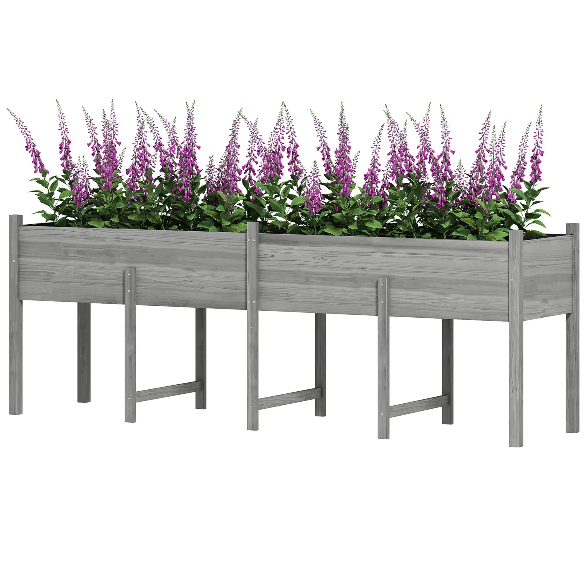 Bac de Jardin Surélevé en Bois, Grande Boîte Surélevée avec Pieds, Gris