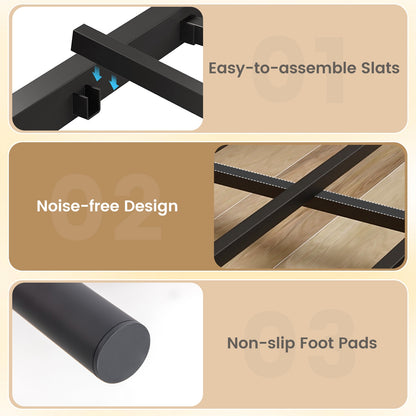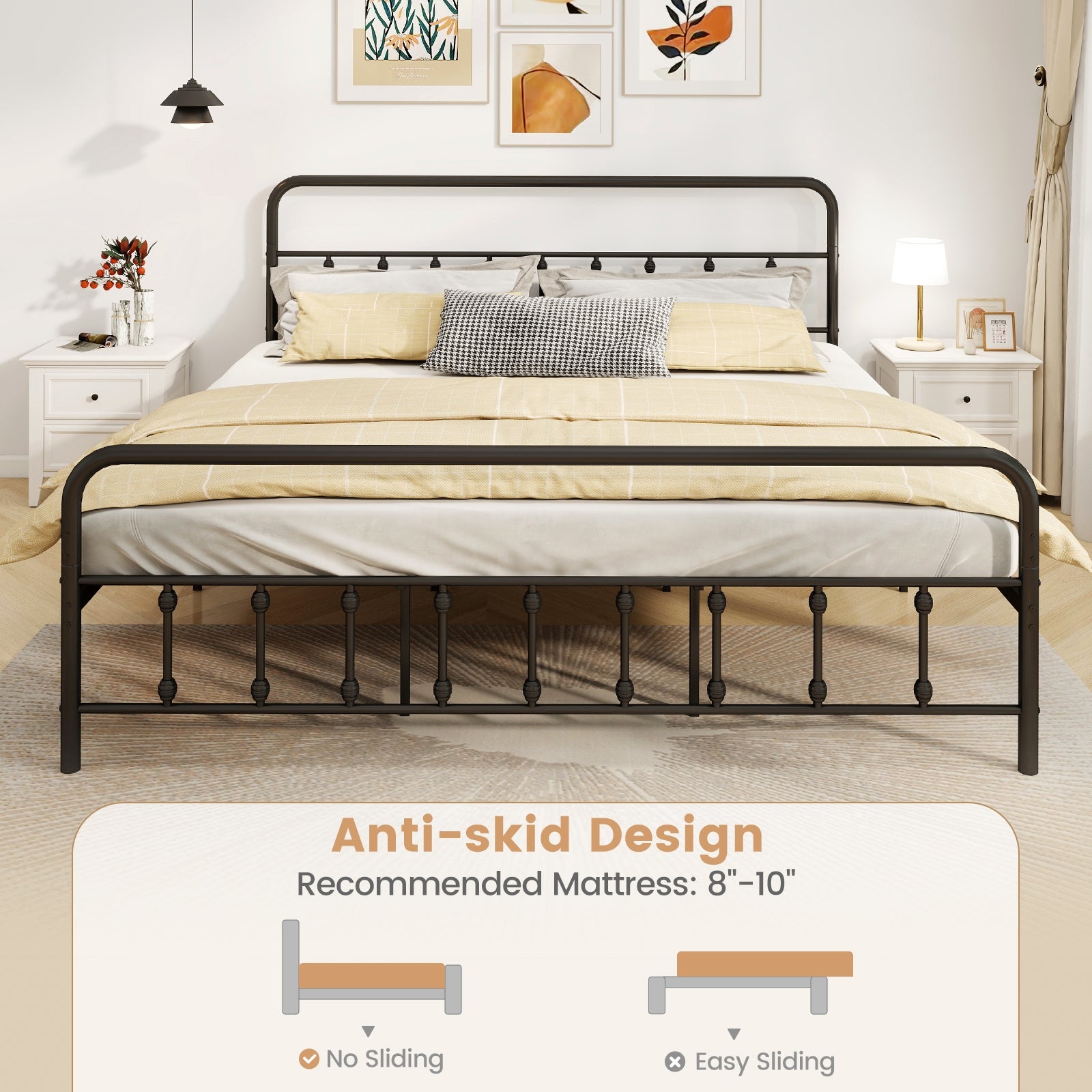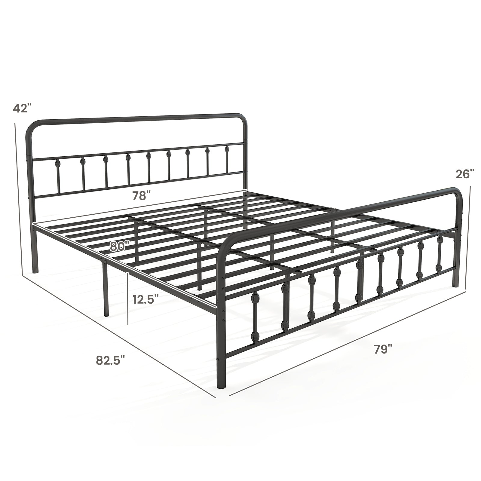 Transform your bedroom with this Victorian style metal platform bed, blending timeless elegance with modern durability. Its heavy-duty metal frame, 12-slat support system, and ample under-bed storage provide reliable support and organization for a restful sleep experience.