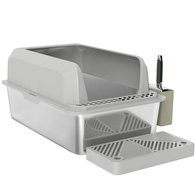 Boîte à Litière pour Chat en Acier Inoxydable, Haute, Porte-Pelle en Métal, Nettoyage Facile