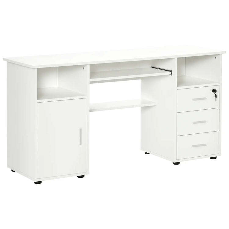 Bureau d'ordinateur avec plateau pour clavier, tiroirs, blanc