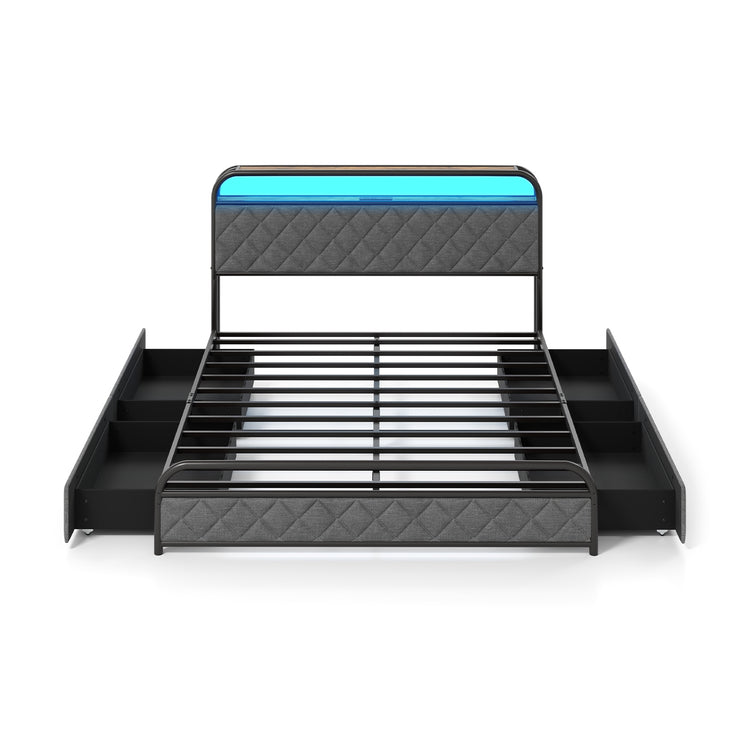 Cadre de lit Queen avec lumières LED, station de recharge, noir