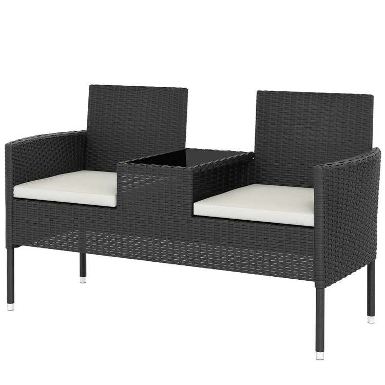 Canapé deux places en rotin PE avec coussin, table centrale, blanc crème