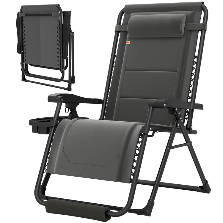 Chaise à Gravité Zéro, Transat Extérieur Inclinable, Capacité de 400 LBS, Gris Foncé