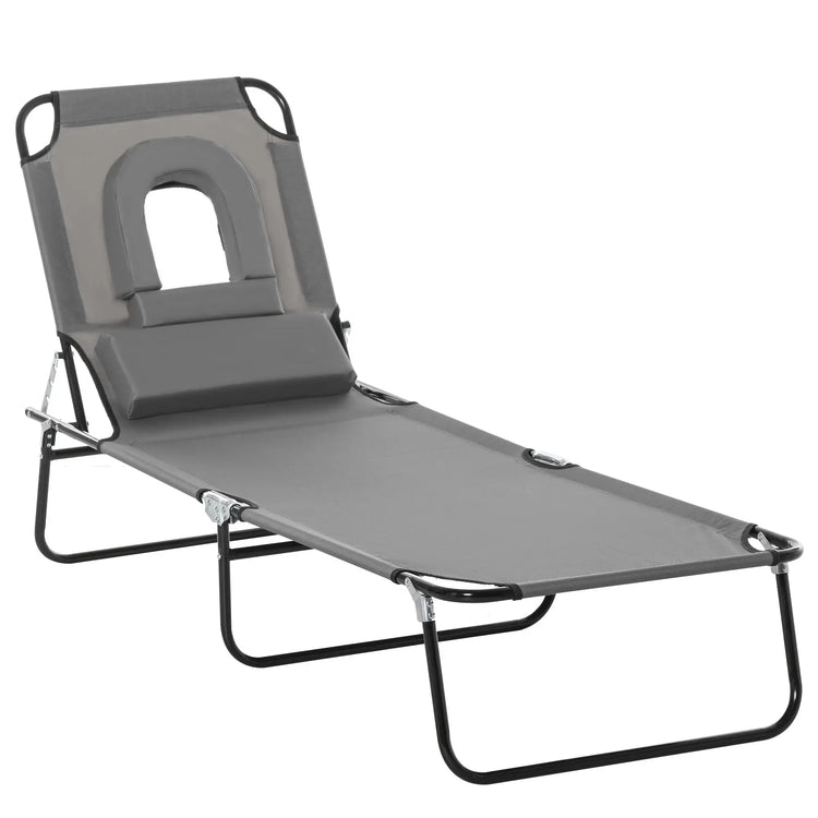 Chaise longue extérieure réglable, chaise pliante avec trou pour le visage, gris