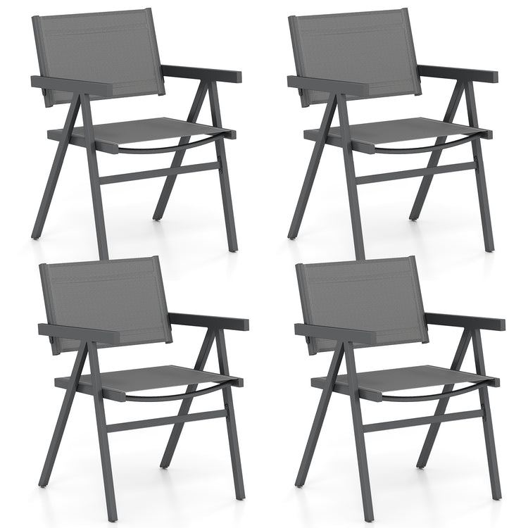Chaises de salle à manger extérieures, lot de 4, siège en tissu respirant, gris