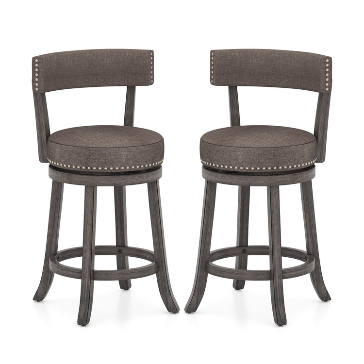 Set of 2 Counter Height Chairs with 360° Swivel Seat and Rubber Wood Frame-24 Inches, Gray