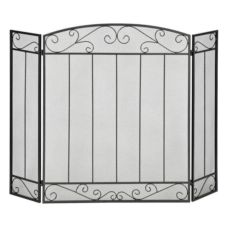 Écran de cheminée pliant 3 panneaux, maille d'acier, motif de vigne décoratif, 41,25" x 31,75", noir