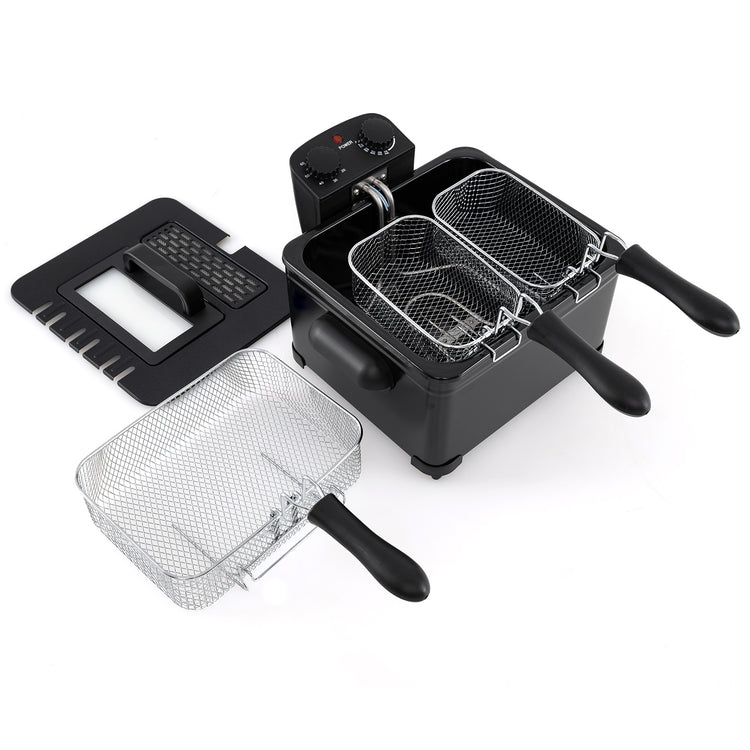 Electric Deep Fryer 5.3QT/21-Cup Stainless Steel 1700W with Triple Basket, Black