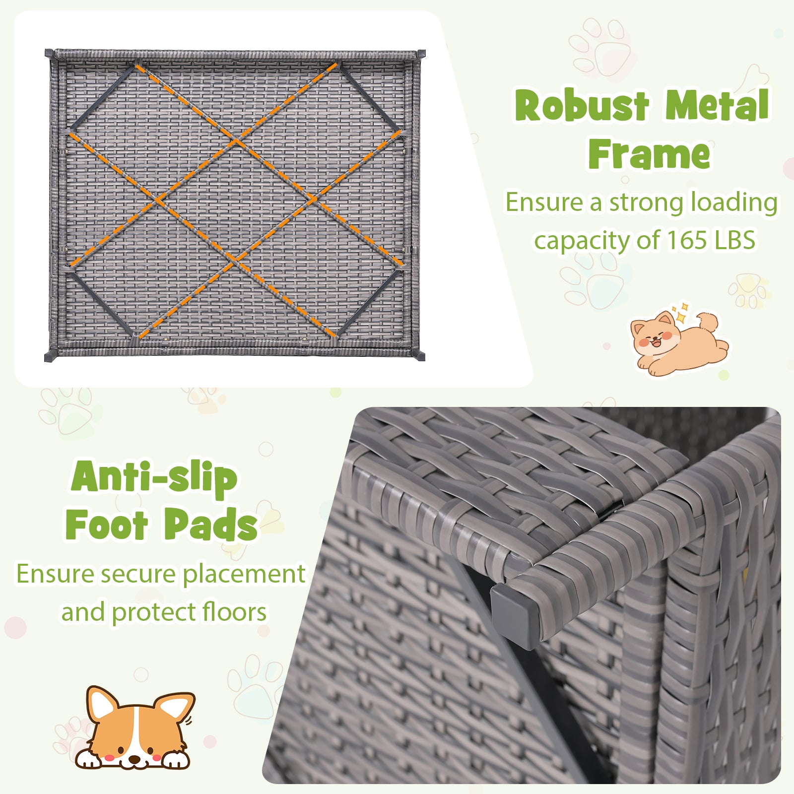 Elevated PE Rattan Dog Bed With Canopy, Gray
