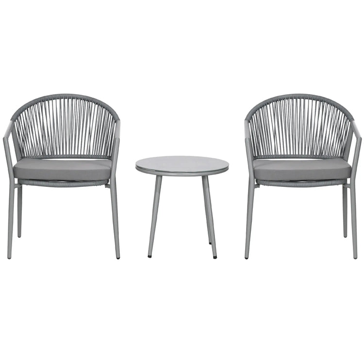 Ensemble Bistro 3 Pièces en Rotin, 2 Fauteuils et Table Basse, Gris