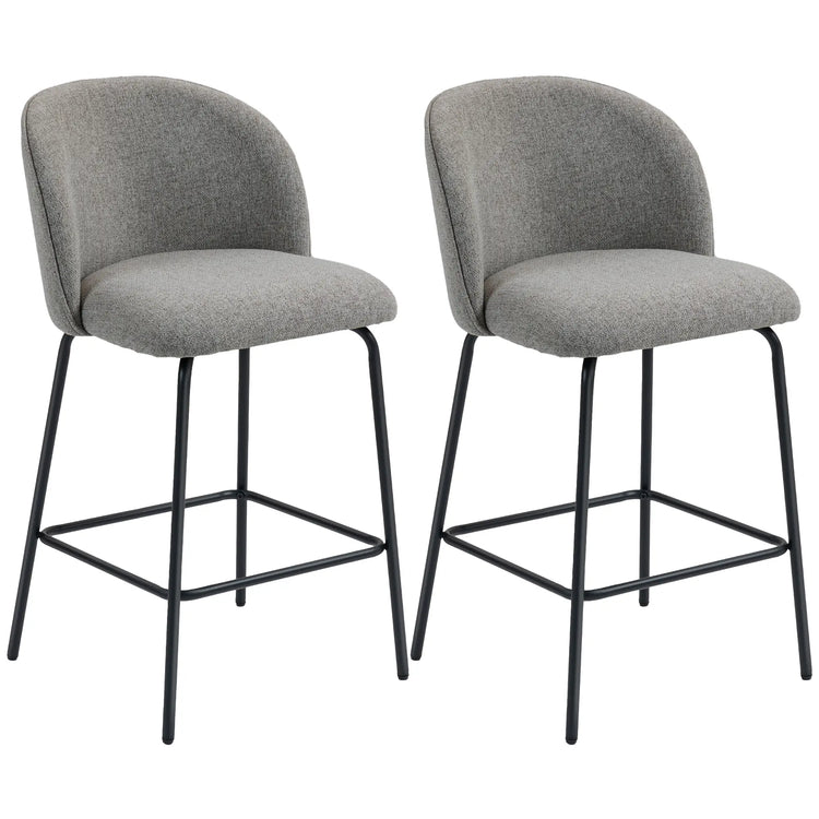 Ensemble de 2 tabourets de bar hauteur comptoir, rembourrés en lin avec dossier, gris foncé