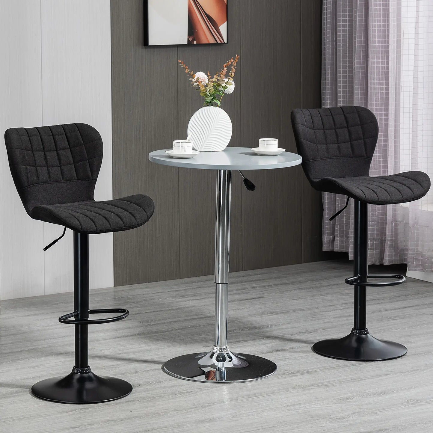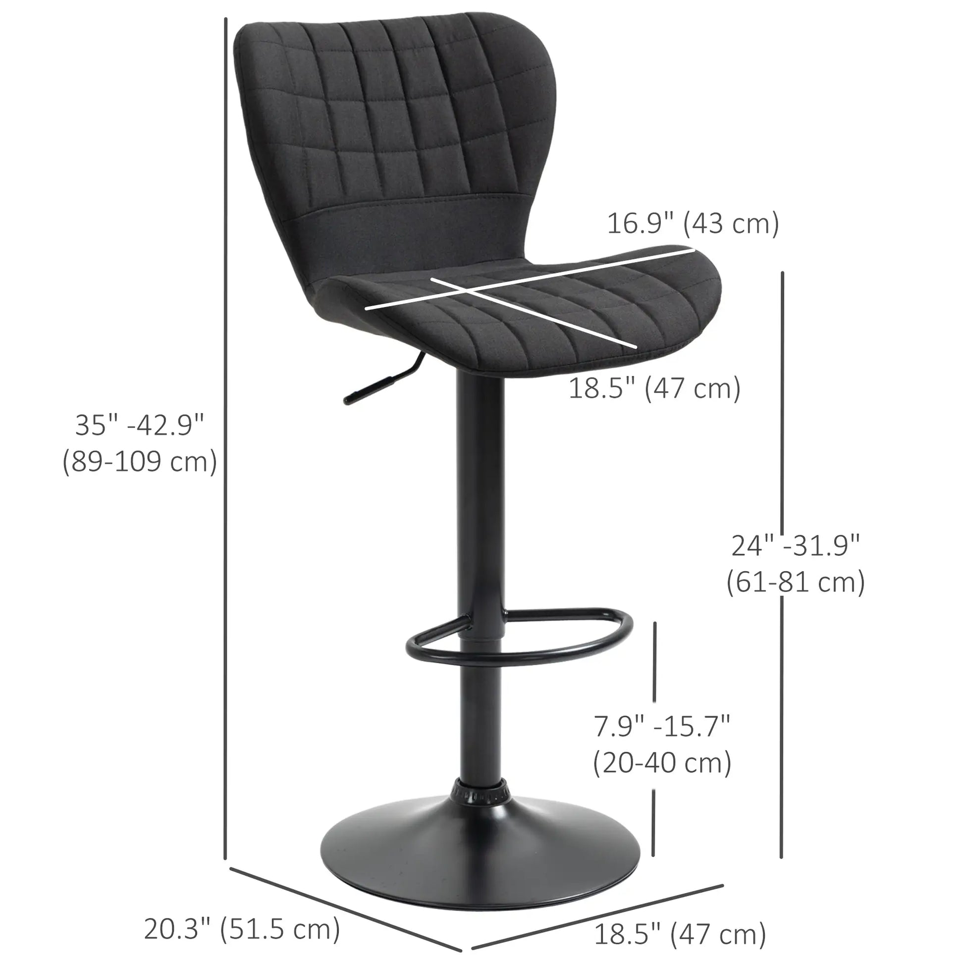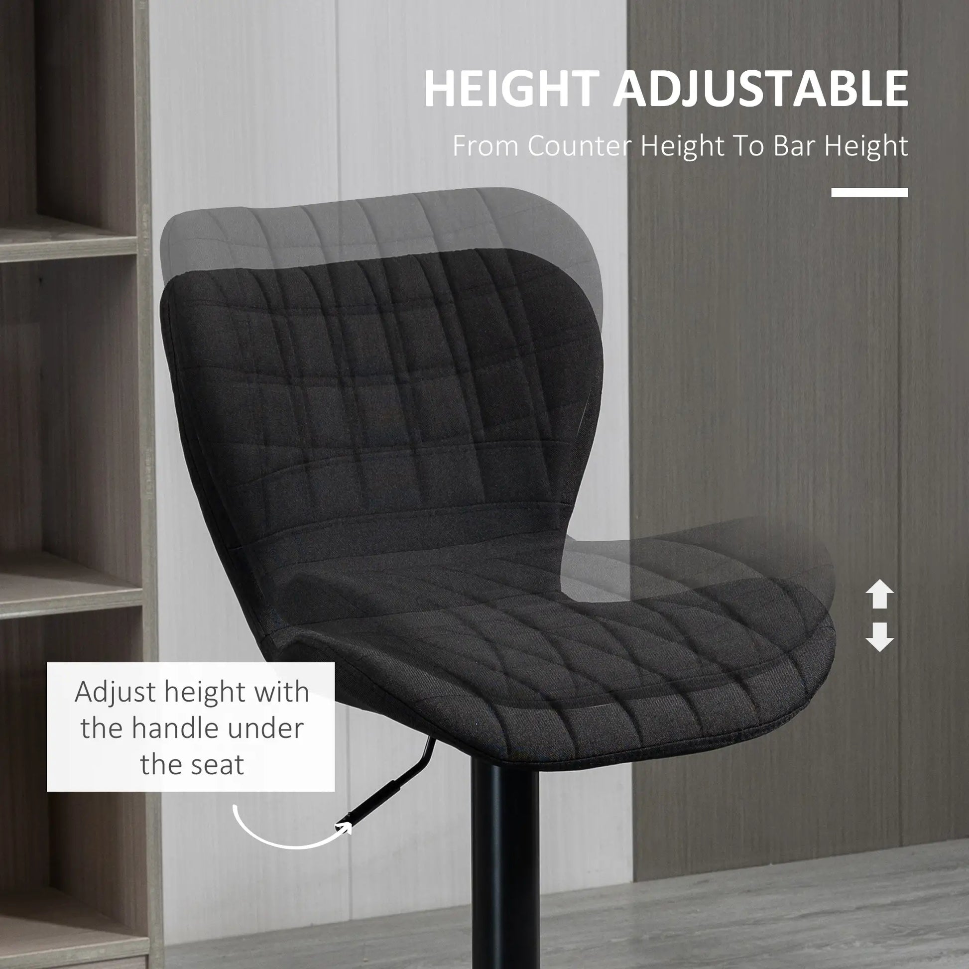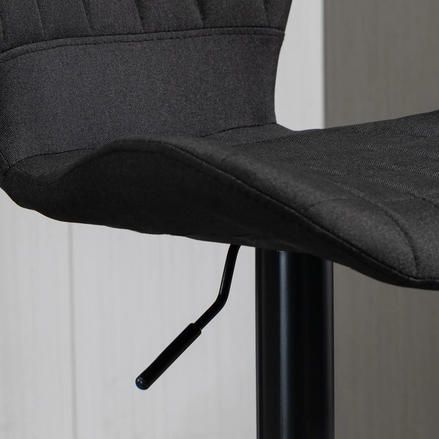 Ensemble de 2 tabourets de bar pivotants réglables, tissu en lin, siège large, noir