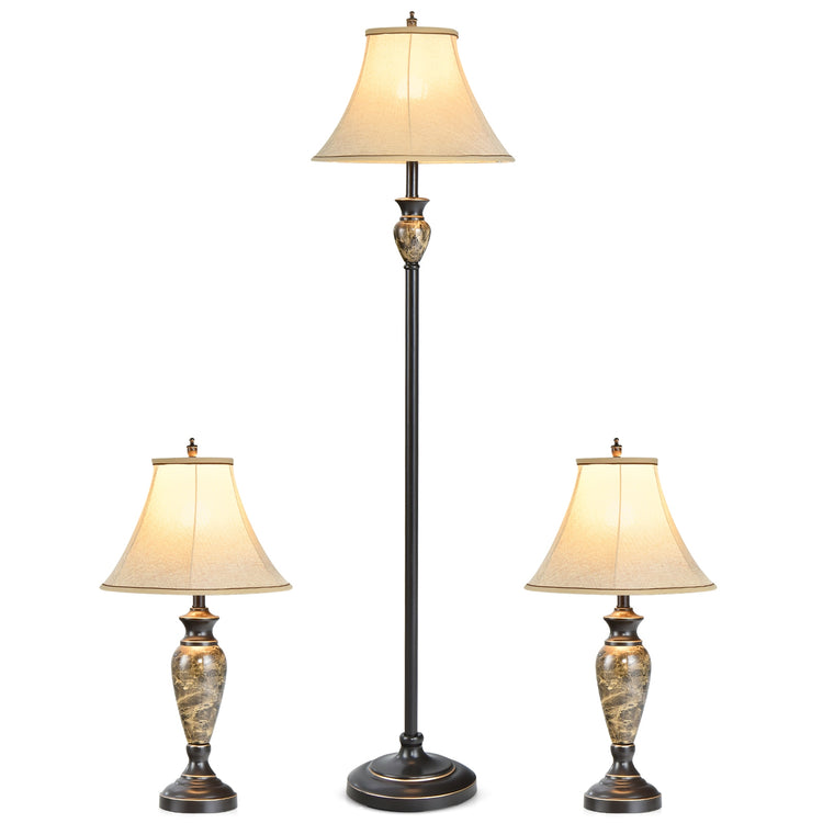 - Ensemble traditionnel de 3 lampes avec lampes de table et lampes sur pied