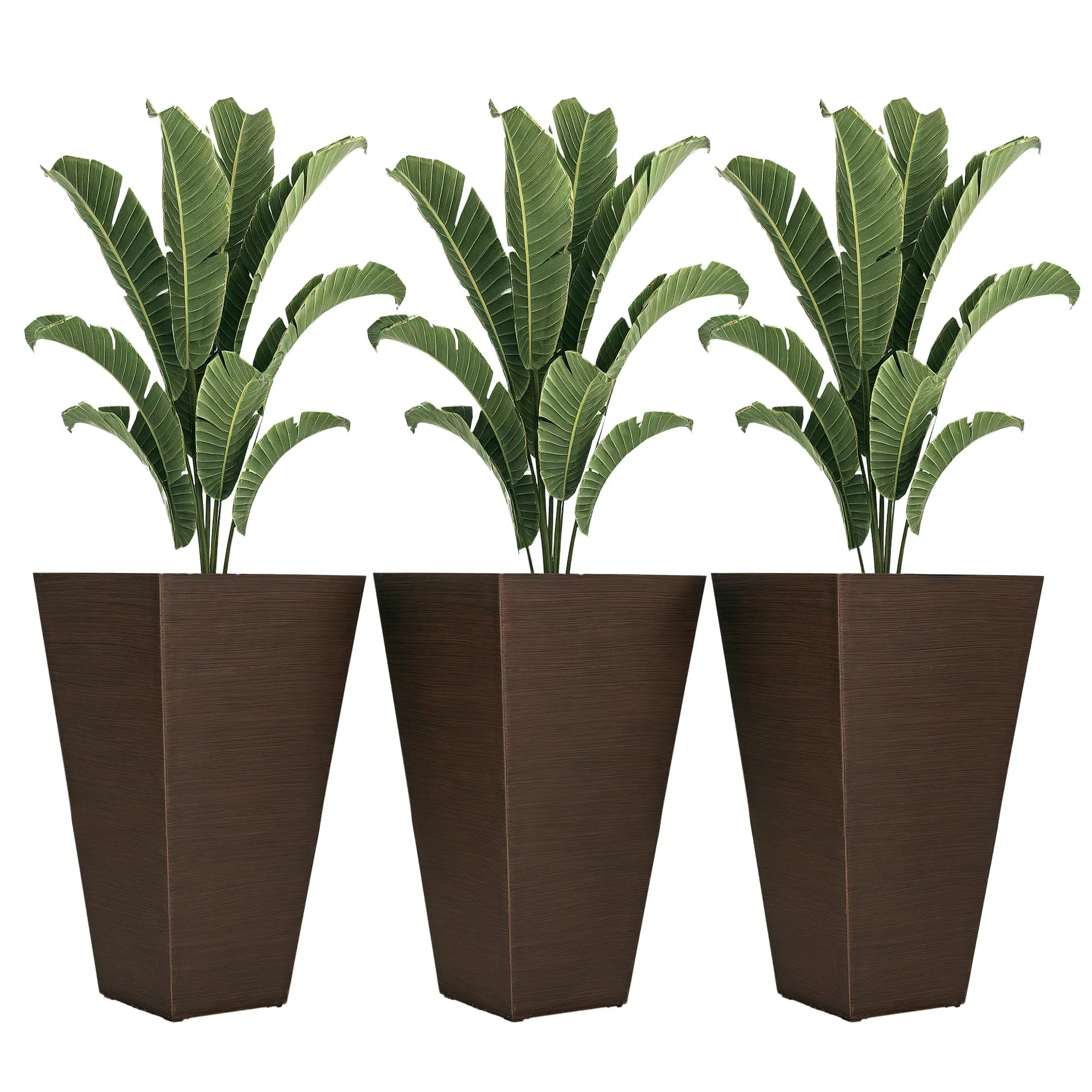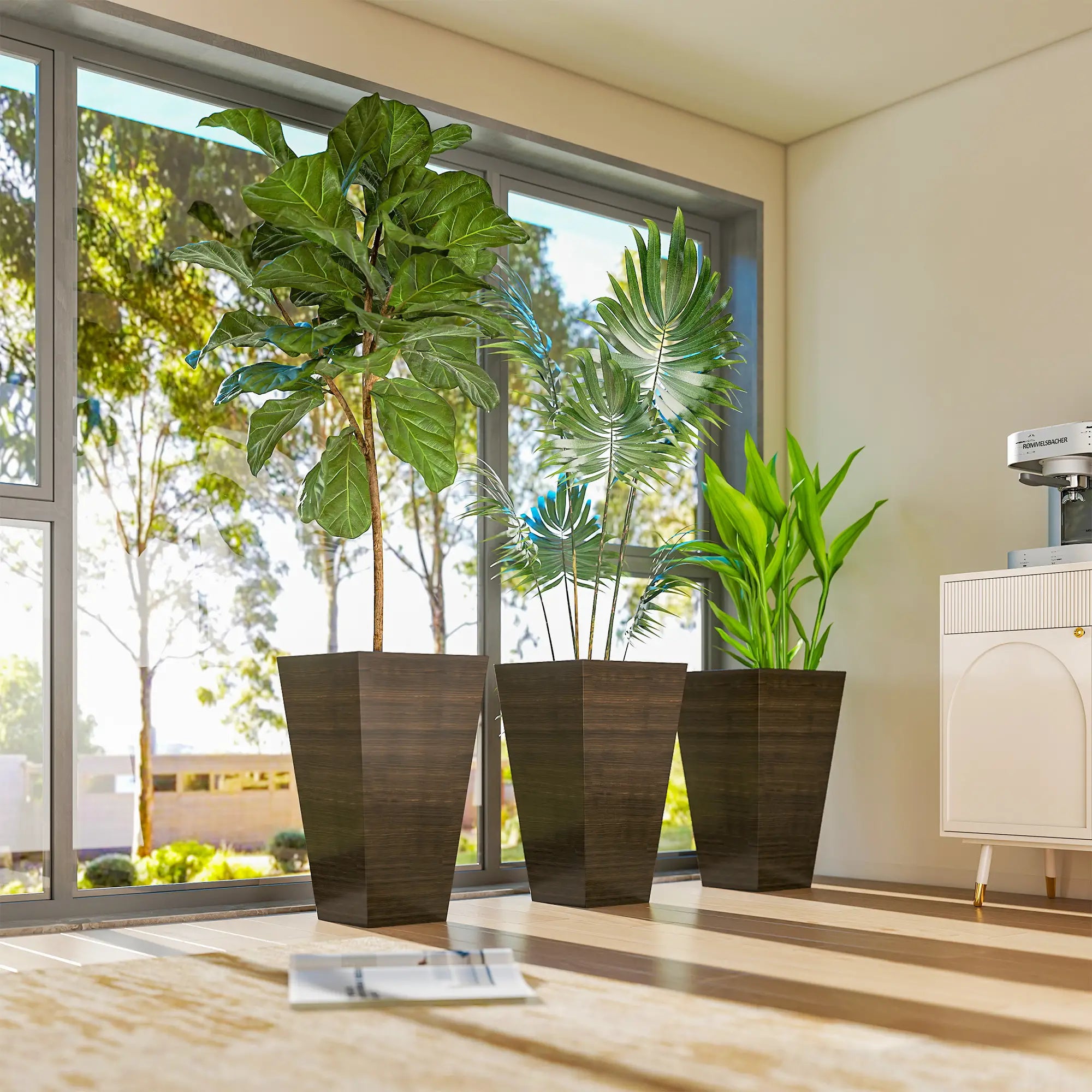 Ensemble de 3 Pots de Plante Hauts, Pot Fuselé de 28 Pouces avec Trous de Drainage, Marron