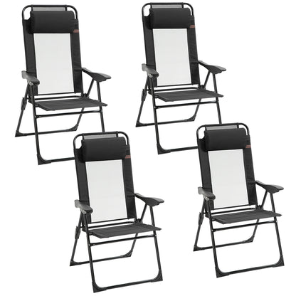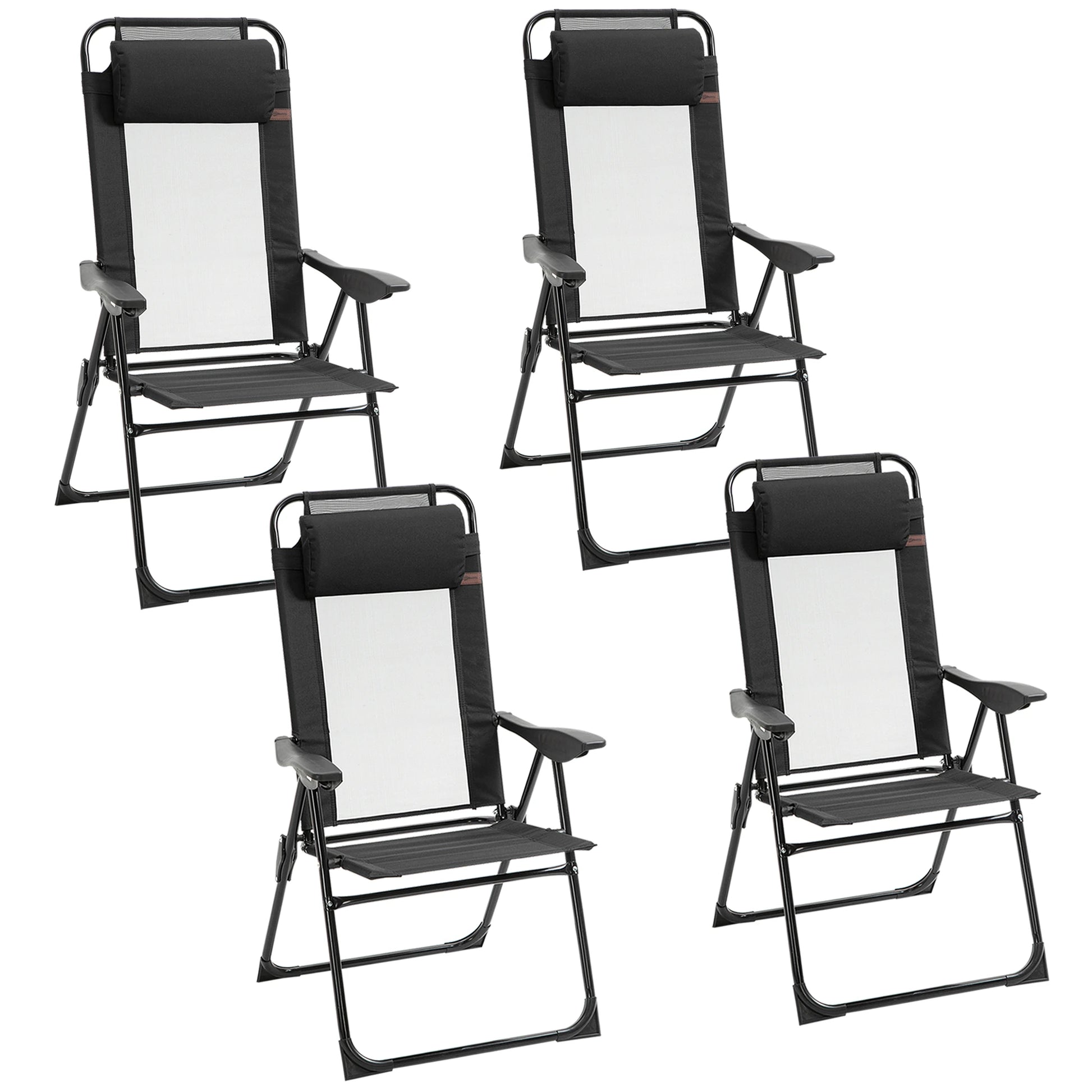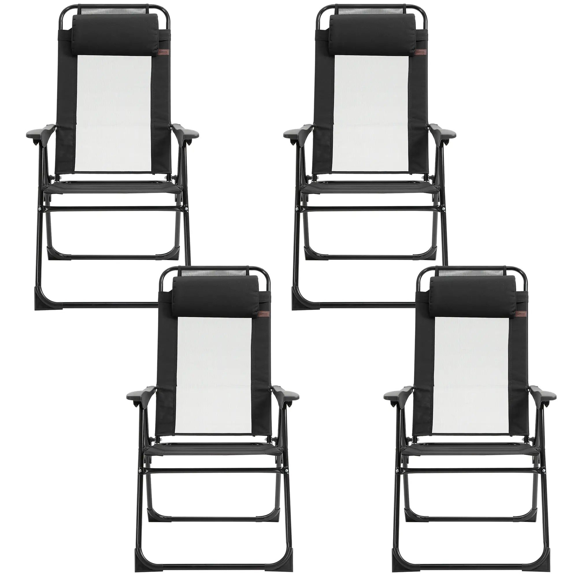 Ensemble de 4 chaises de camping, dossier réglable, repose-tête amovible, noir