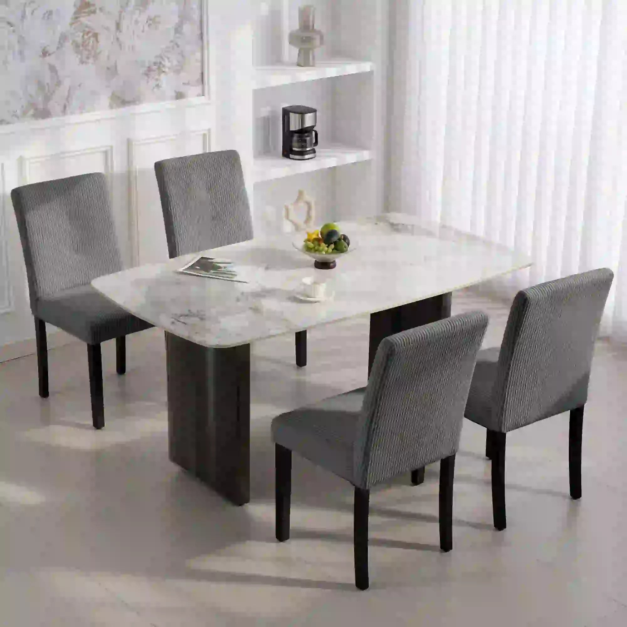 - Ensemble de quatre chaises de cuisine contemporaines conçues pour le confort et le style dans les salles à manger et les salons.