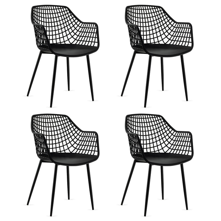 Ensemble de 4 chaises de salle à manger modernes robustes, dossier ajouré aéré, noir