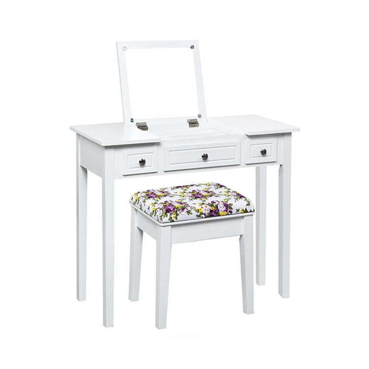 Ensemble de Coiffeuse Vanité, Miroir à Rabattement, 3 Tiroirs, Blanc
