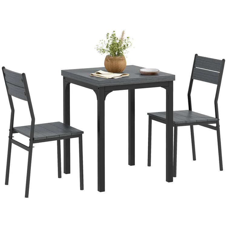 Ensemble de Table à Manger pour 2 Personnes, 3 Pièces, Pieds en Métal, Gris