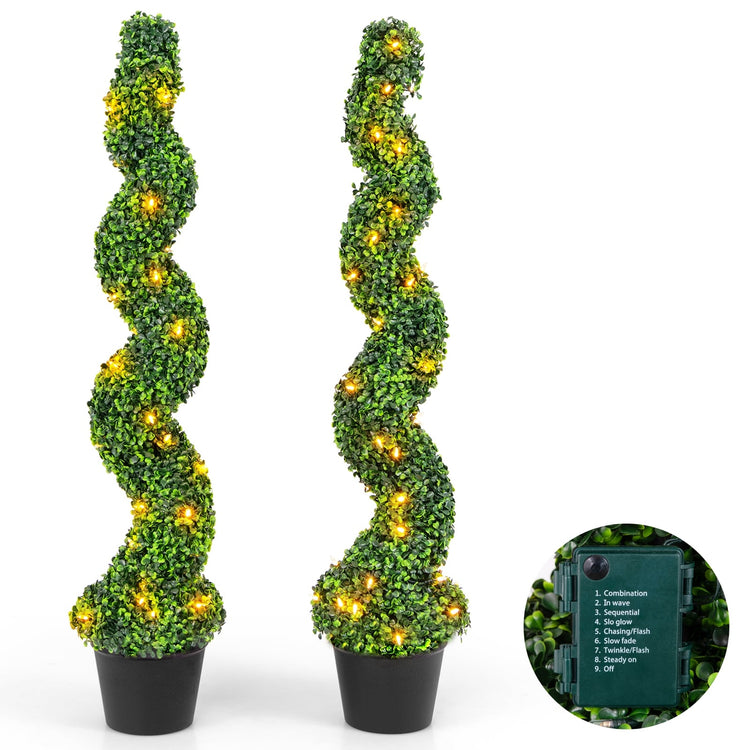 Ensemble de Topiaires Spirales en Buis Artificiel Pré-Éclairé, 100 Lumières LED