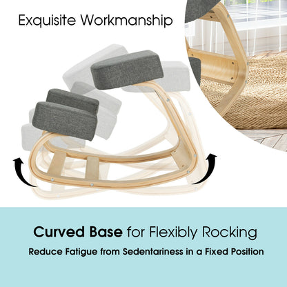 Votre corps sera dans une position naturelle et verticale, de manière à libérer votre douleur d'une position assise prolongée. En outre, la base incurvée de cette chaise à bascule la fait trembler comme un gobelet, gardant votre équilibre en mouvement. Fabriquée en bois massif de première qualité, cette chaise ergonomique garantit une utilisation à long terme et une capacité de charge élevée de 330 lb. Les endroits où s'asseoir et mettre les genoux sont recouverts d'un coussin en éponge élastique, ce qui vous permet d'avoir une meilleure expérience d'utilisation. Quelles que soient les activités assises que vous pratiquez, vous pouvez utiliser ce siège pratique !