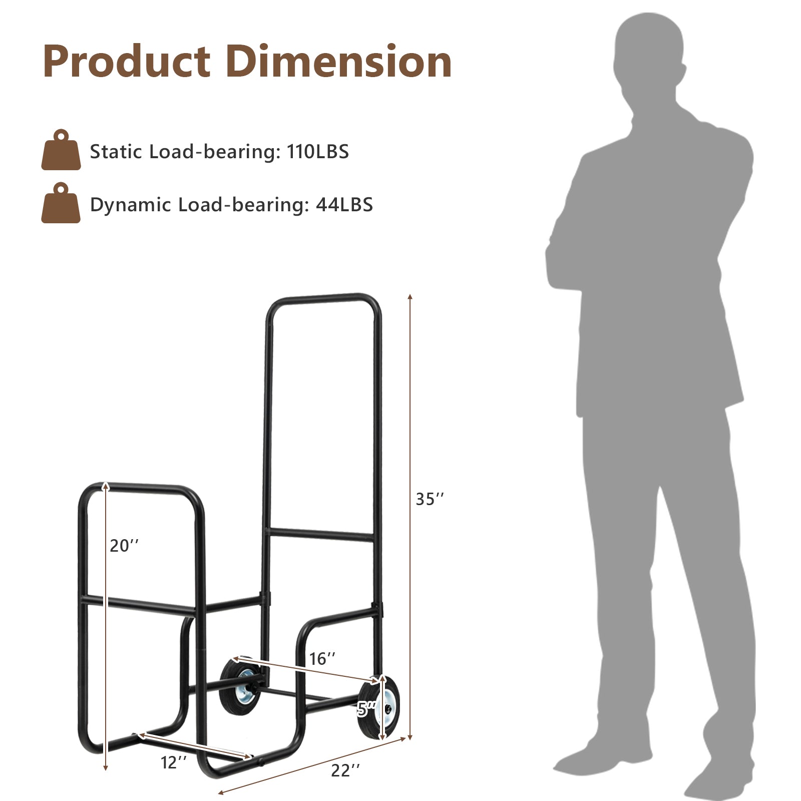 Porte-bûches de bois de chauffage avec roues antidérapantes et résistantes à l'usure, noir