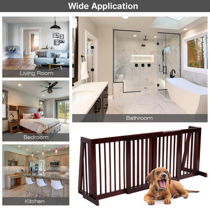 Folding Adjustable 3 Panel Wood Fence, Brown
