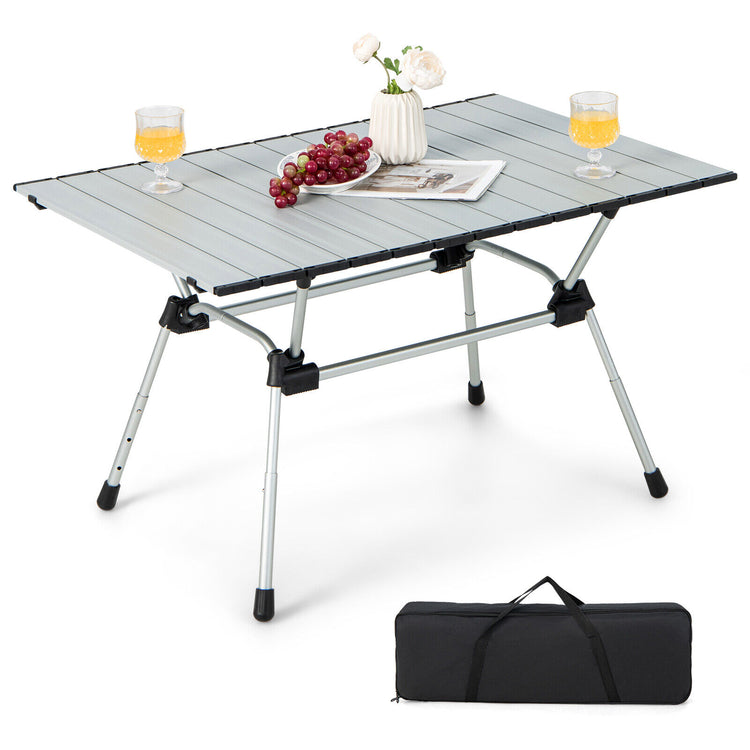 Folding Heavy-Duty Aluminum Camping Table with Carrying Bag, Silver