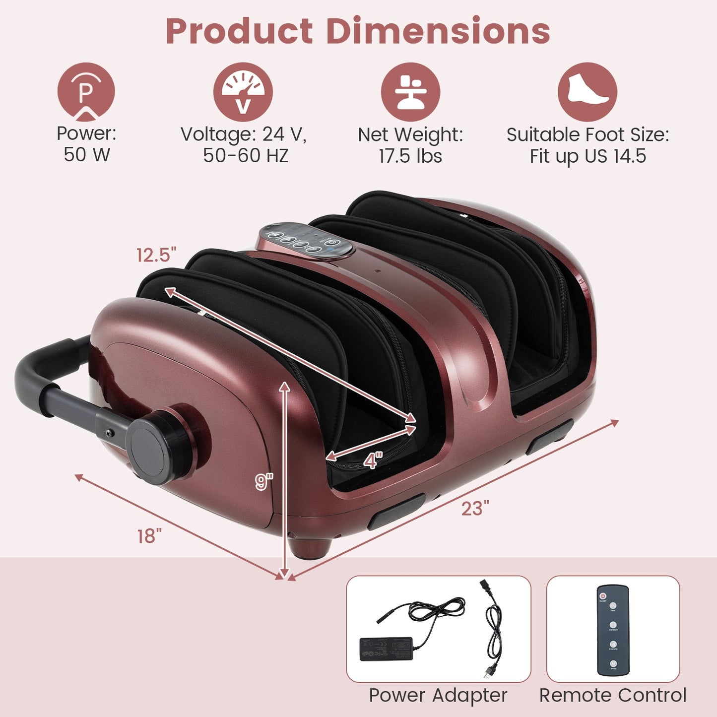 Foot and Calf Massager with Heat for Blood Circulation Pain Relief, Red