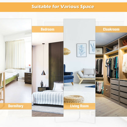 This full-length mirror offers versatile placement options for wall mounting or door hanging, featuring a large 42.5-inch height for full-body viewing with high-definition, distortion-free glass. Its shatter-proof design ensures safety, while the adjustable hooks allow for custom height positioning to suit any space.