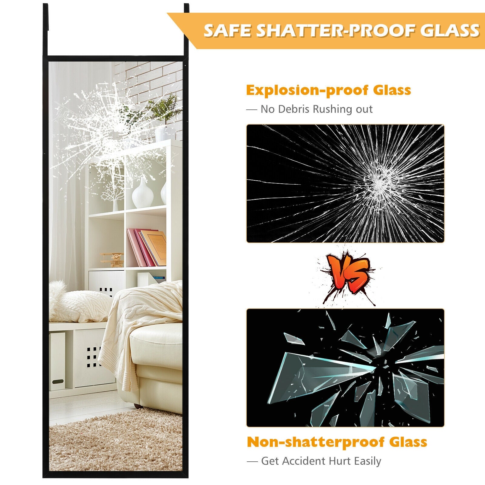 Full Length Metal Door Mirror, Adjustable Hook, Black
