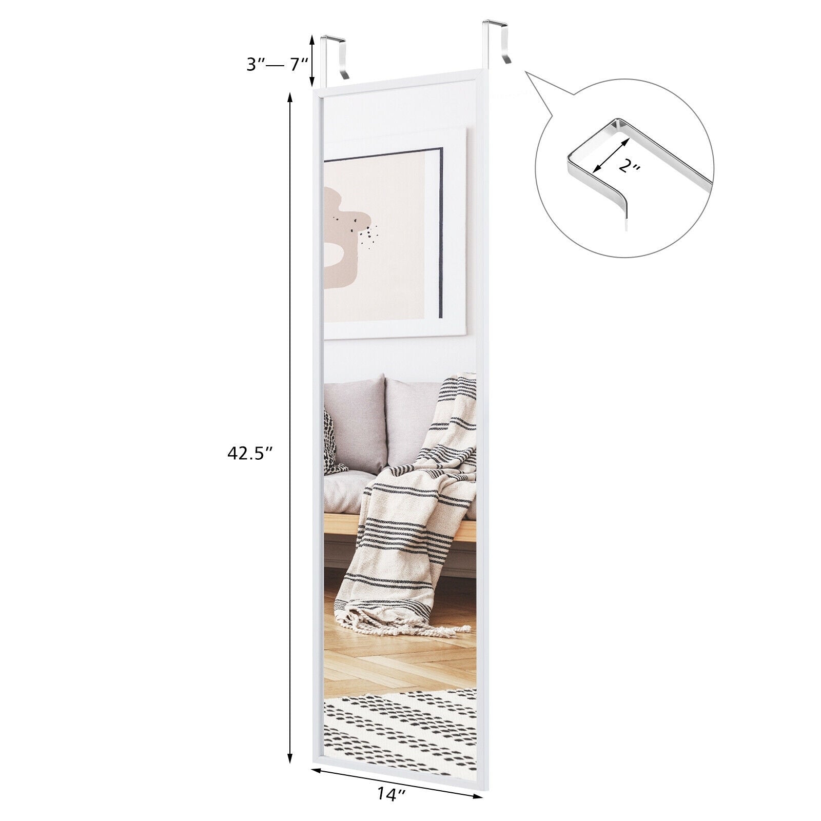 Full Length Metal Door Mirror, Adjustable Hook, White