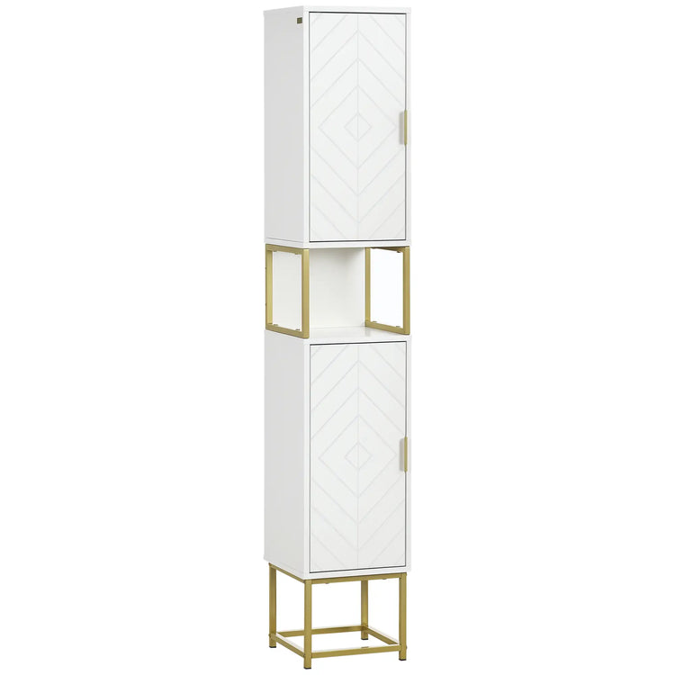 Élevez l'organisation de votre maison avec cette armoire de rangement haute et élégante, alliant élégance moderne et fonctionnalité pratique. Son motif chevron en diamant et ses accents dorés ajoutent une touche de luxe, tandis que les options de rangement flexibles et le design économiseur d'espace en font un choix parfait pour n'importe quelle pièce.
