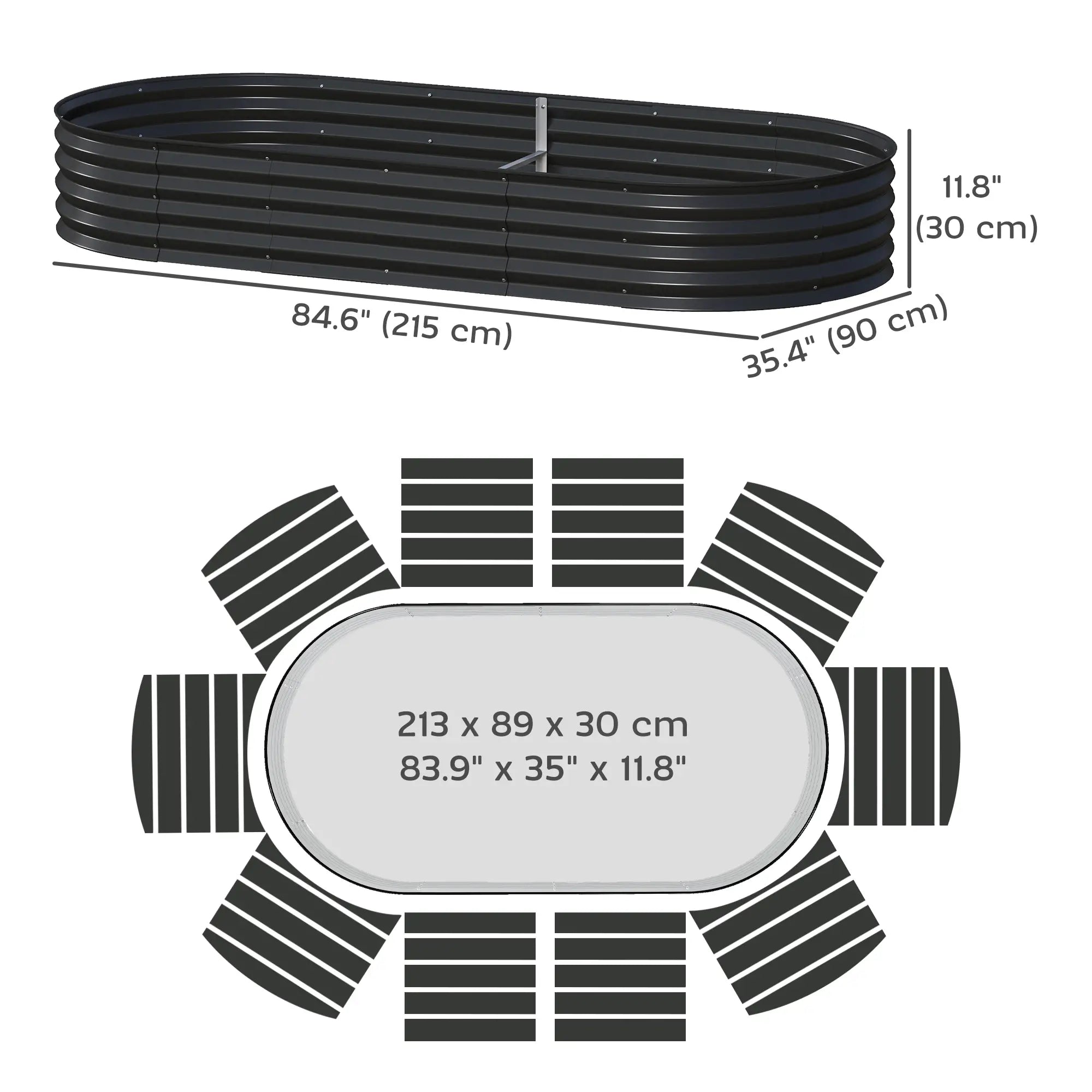 Grande Jardinière d'Extérieur, 7' x 3' x 1', Lit de Jardin Suralélevé Galvanisé, Noir
