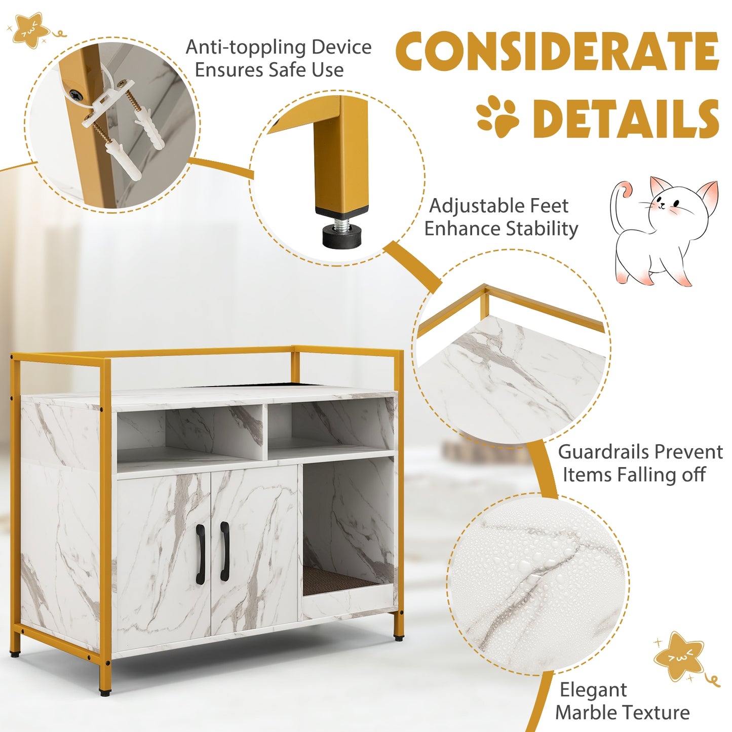 ● Espace de stockage abondant : Doté d'un espace de stockage diversifié, notre bac à litière caché vous aidera à trier les objets et à organiser la pièce en désordre. Le plateau de table protégé par des garde-corps vous permet d'exposer les décorations sans tomber. En outre, les 2 compartiments, l'armoire et l'étagère en dessous conviennent à vos magazines préférés, à la litière de votre animal ou à d'autres fournitures pour animaux de compagnie.