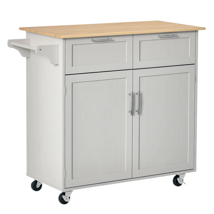 Île de cuisine roulante, Chariot avec 2 tiroirs, 2 armoires à portes, 2 portes, Gris