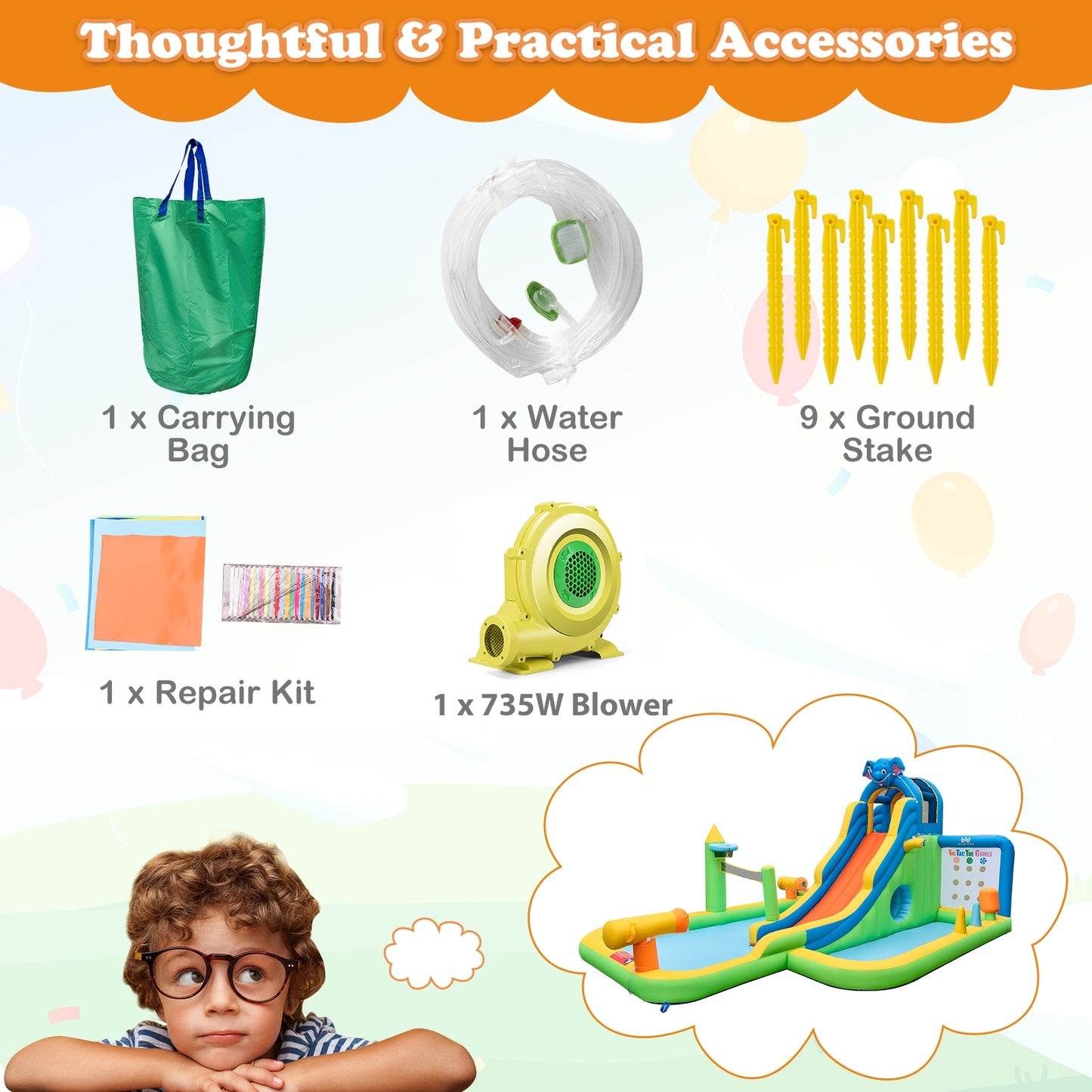 Inflatable Water Slide, 9-In-1 Giant Water Park, 735W Blower, Multicolor
