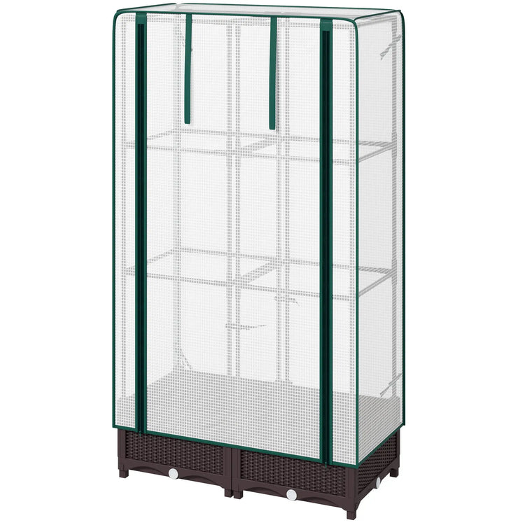Kit de Lit de Jardin Surélevé avec Treillis, Couverture en PE, Porte à Fermeture Éclair, 80 x 40 x 124 cm, Marron