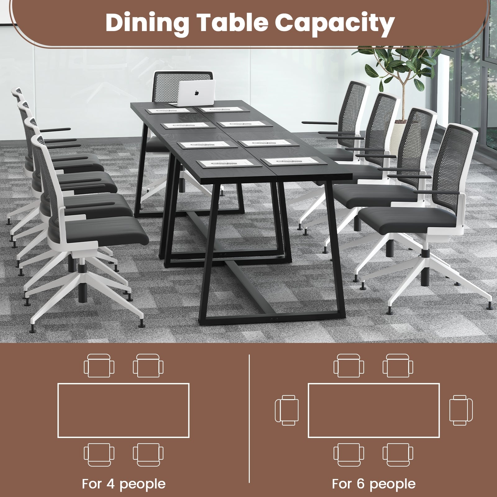 Large Dining Table with Heavy-duty Metal Frame and Anti-slip Foot Pads, Black