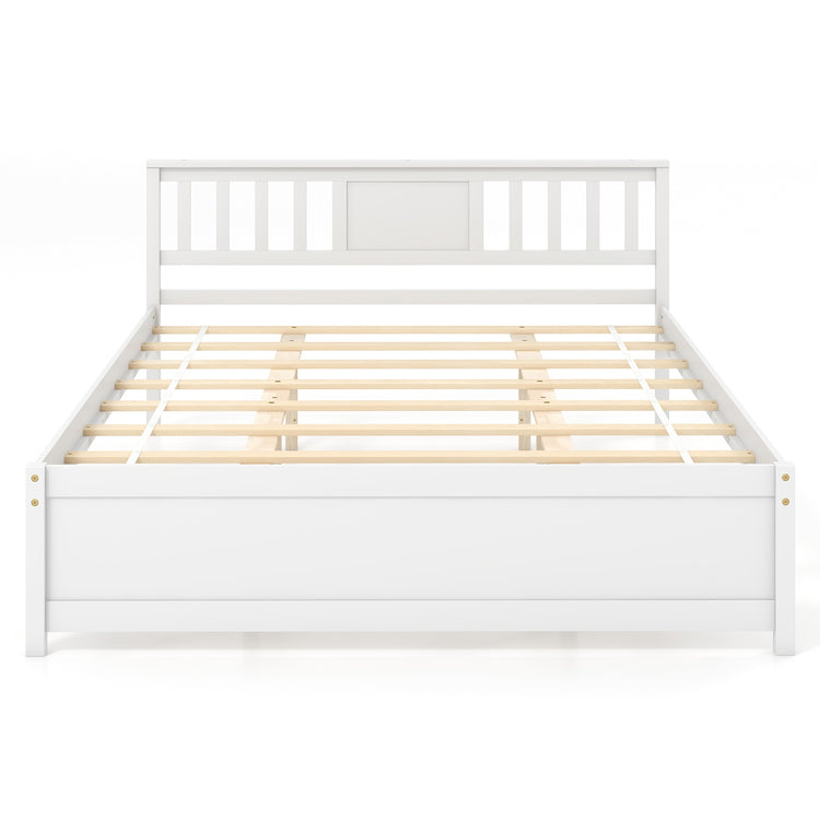 Lit à plateforme en bois avec tête de lit, support à lattes de bois, taille queen, blanc