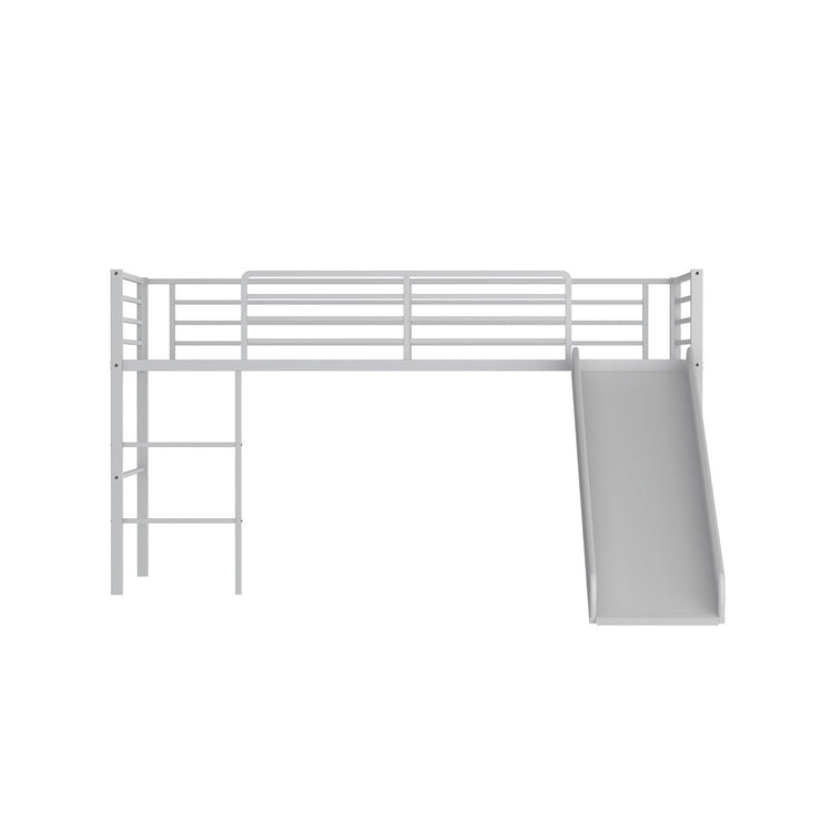 Lit superposé en métal jumeau avec toboggan, garde-corps de sécurité, échelle intégrée, argenté