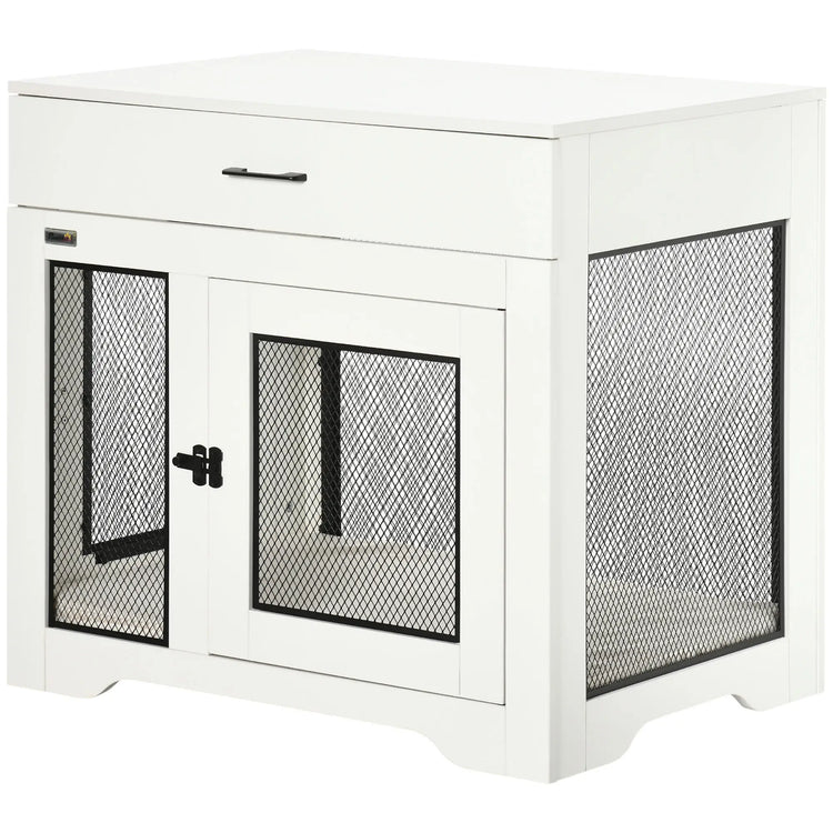 Meuble de caisse pour chien avec coussin, 2 portes, rangement, blanc