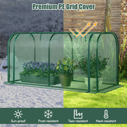 Mini Tunnel Greenhouse, Roll-Up Zipper Door, Green