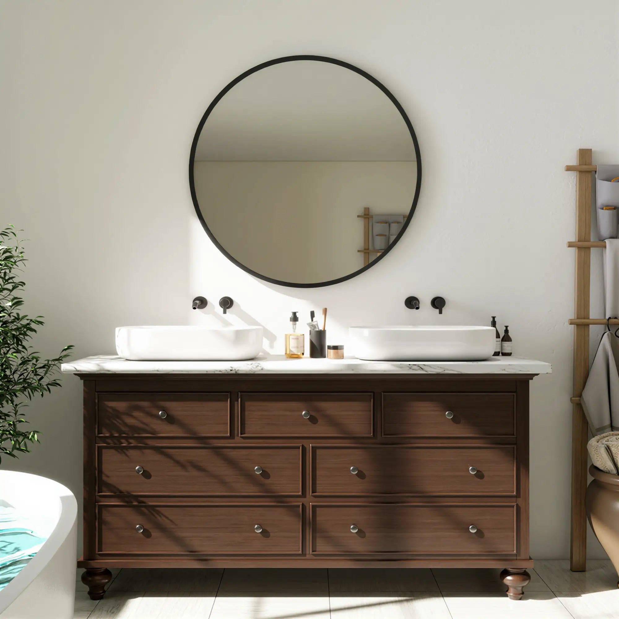 Miroir rond de 30", Cadre en métal, Miroir de salle de bain, Noir