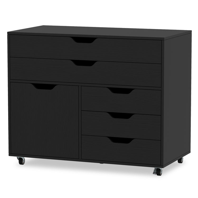 Modern Vertical 5-Drawer Mobile Chest with Door 5 Casters, Black