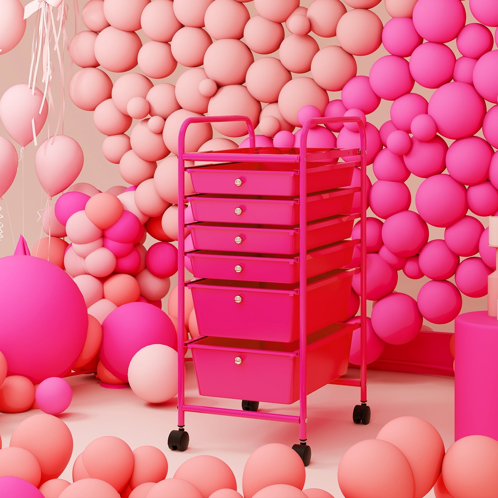6 Drawers Rolling Storage Cart Organizer, Rose Red