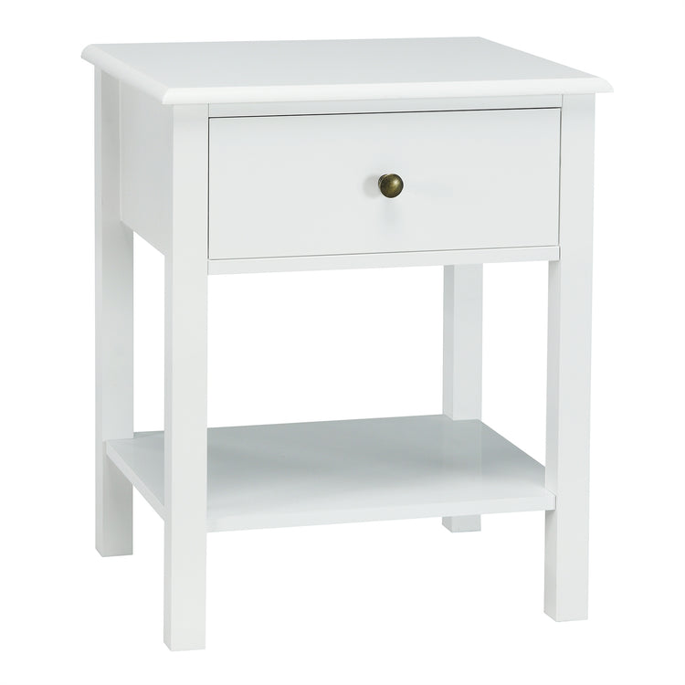 Table de chevet avec tiroir et étagère, blanc